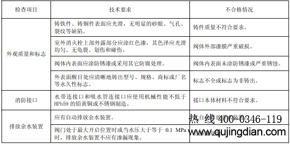 目測(cè)和手動(dòng)檢查室外消火栓外觀(guān)質(zhì)量和標(biāo)志、消防接口的本體材料以及排放余水裝置。