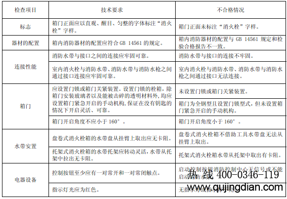 6.8.4.2.1 目測(cè)檢查消火栓箱標(biāo)志、器材的配置、器材的性能、連接性能、箱門(mén)、水帶安置和電器設(shè)備。